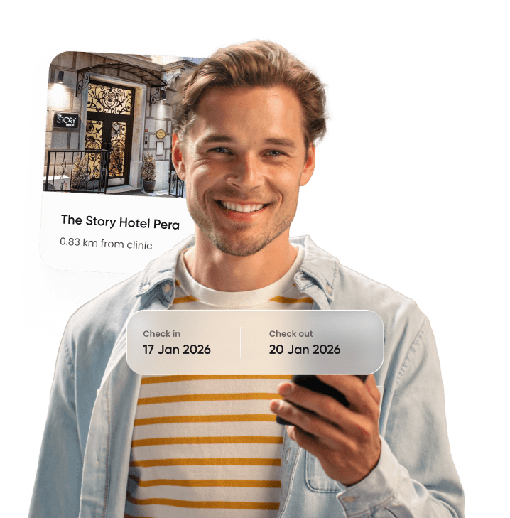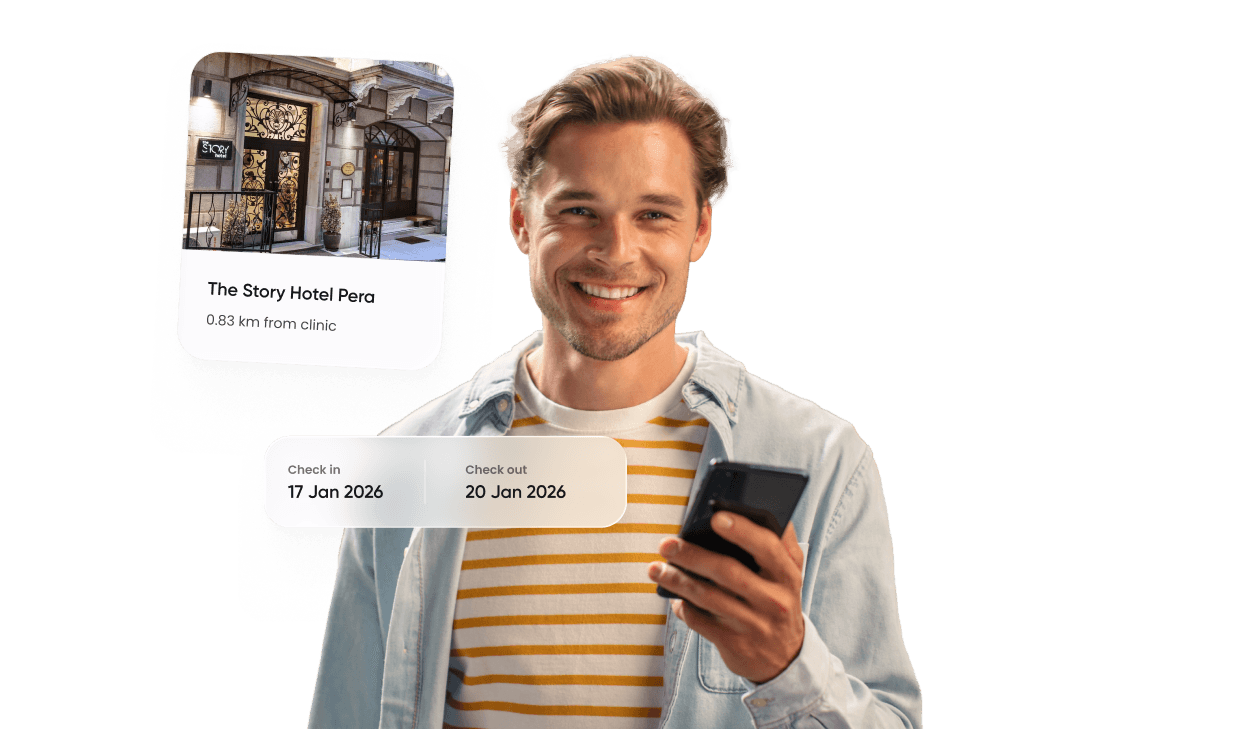 Once you choose your clinic, we coordinate your flights, hotel, and transfers so everything is ready before you arrive.